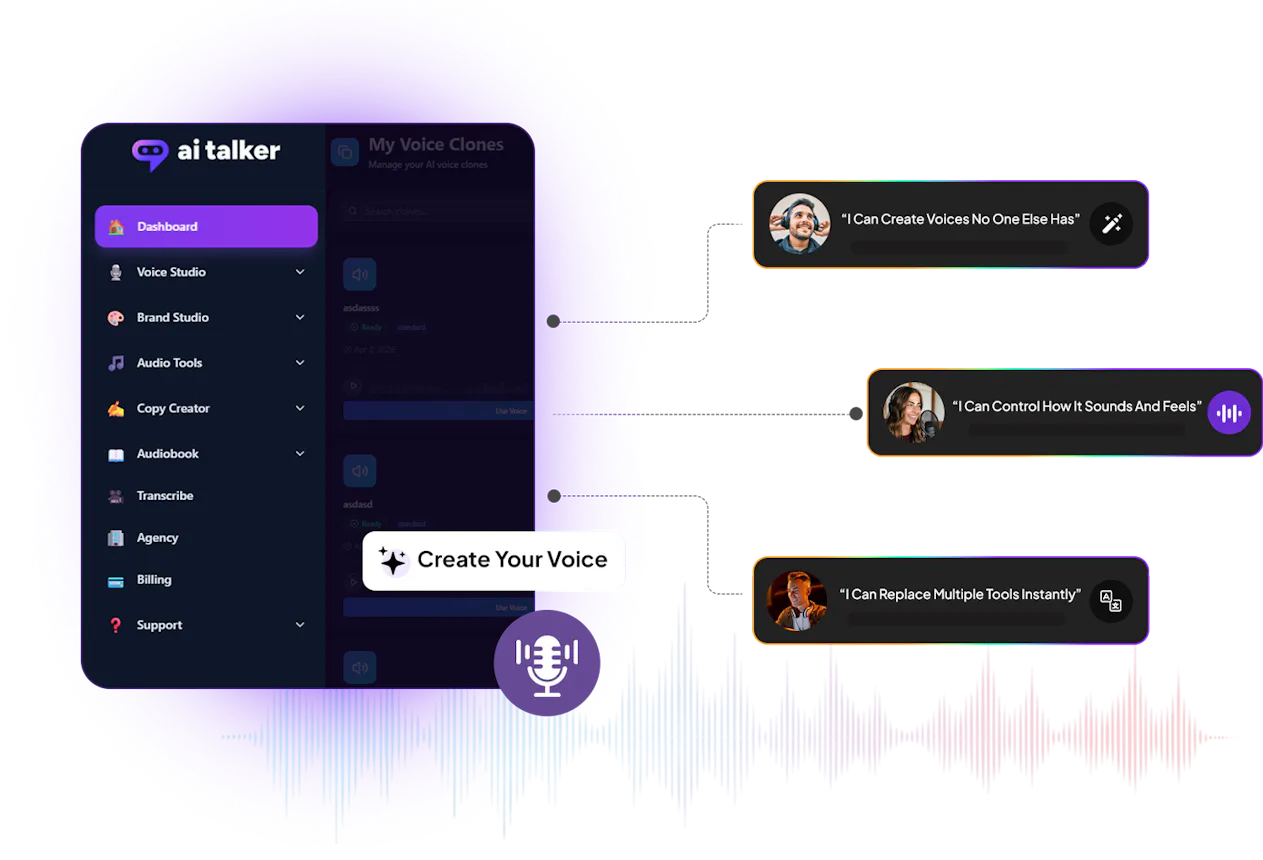 One Description. One Unique Voice. Hear What AI Talker Creates.